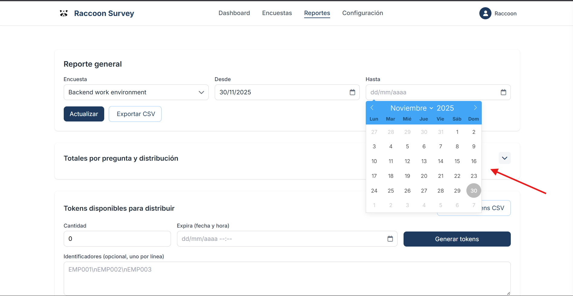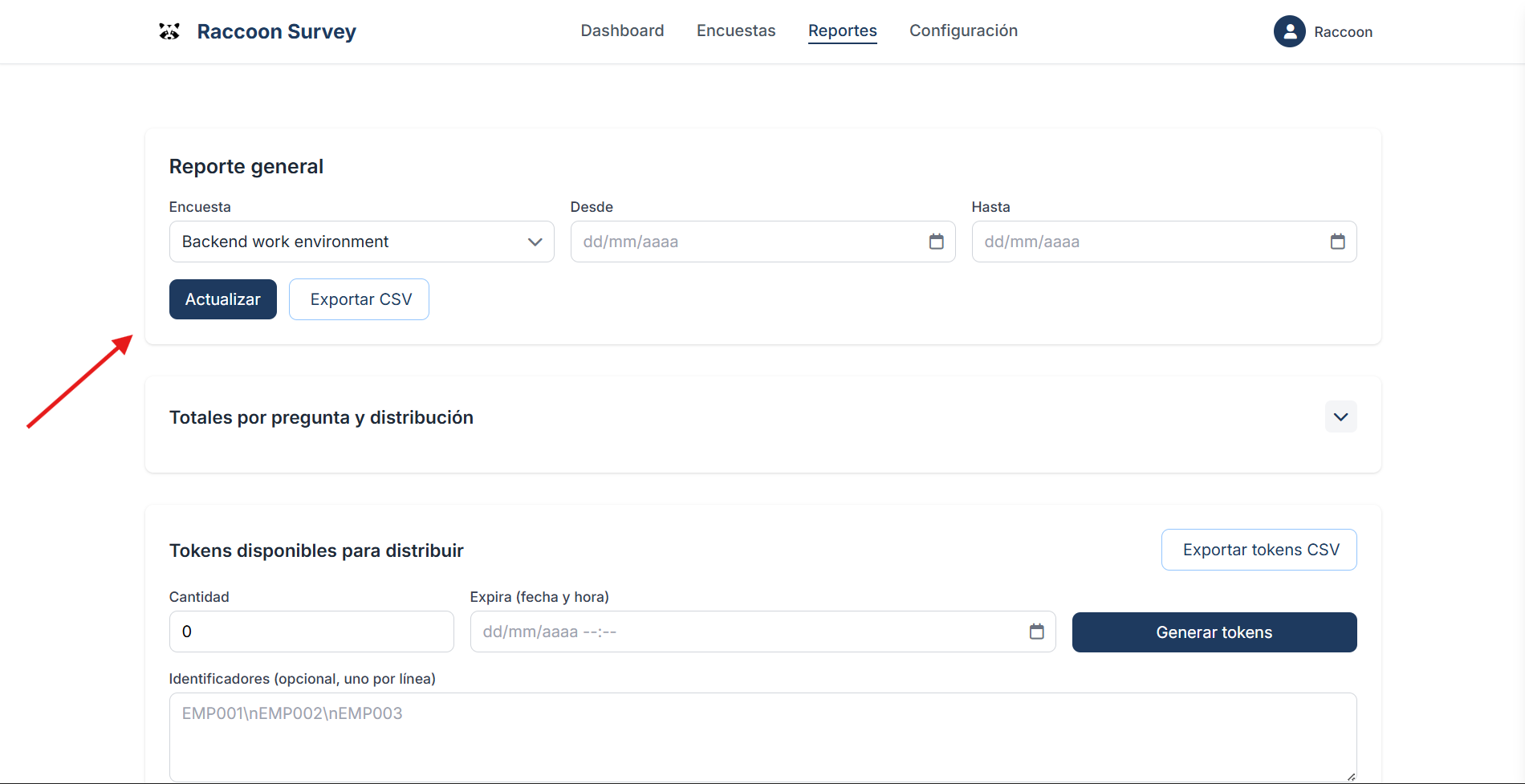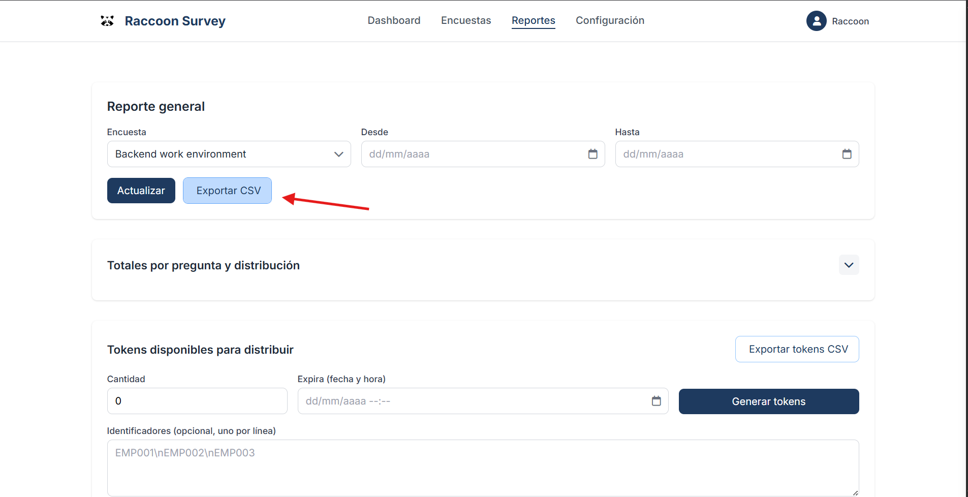 Step 1 — Choose the survey for which you want to generate reports