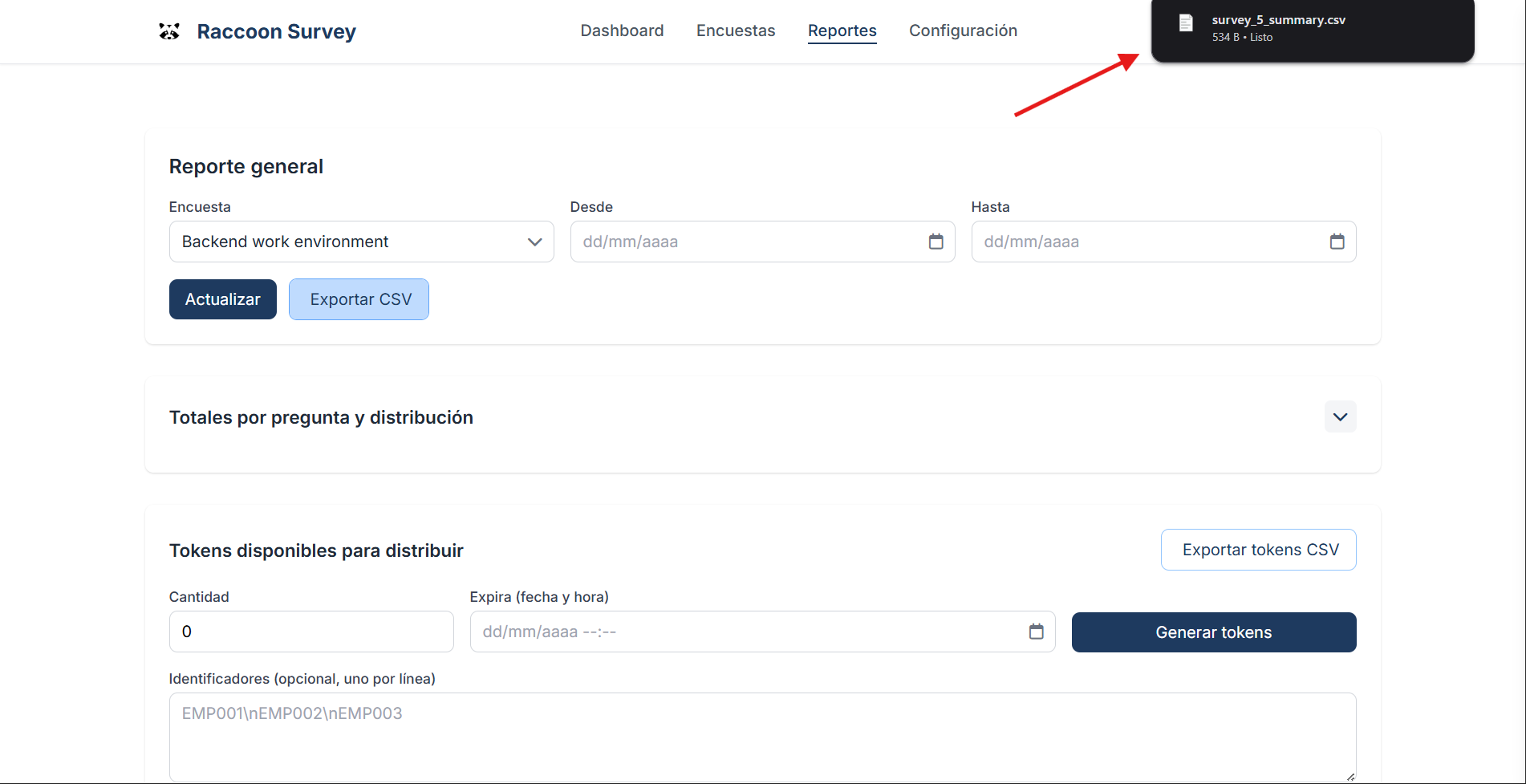 Go to “Reports → [Your survey]”.